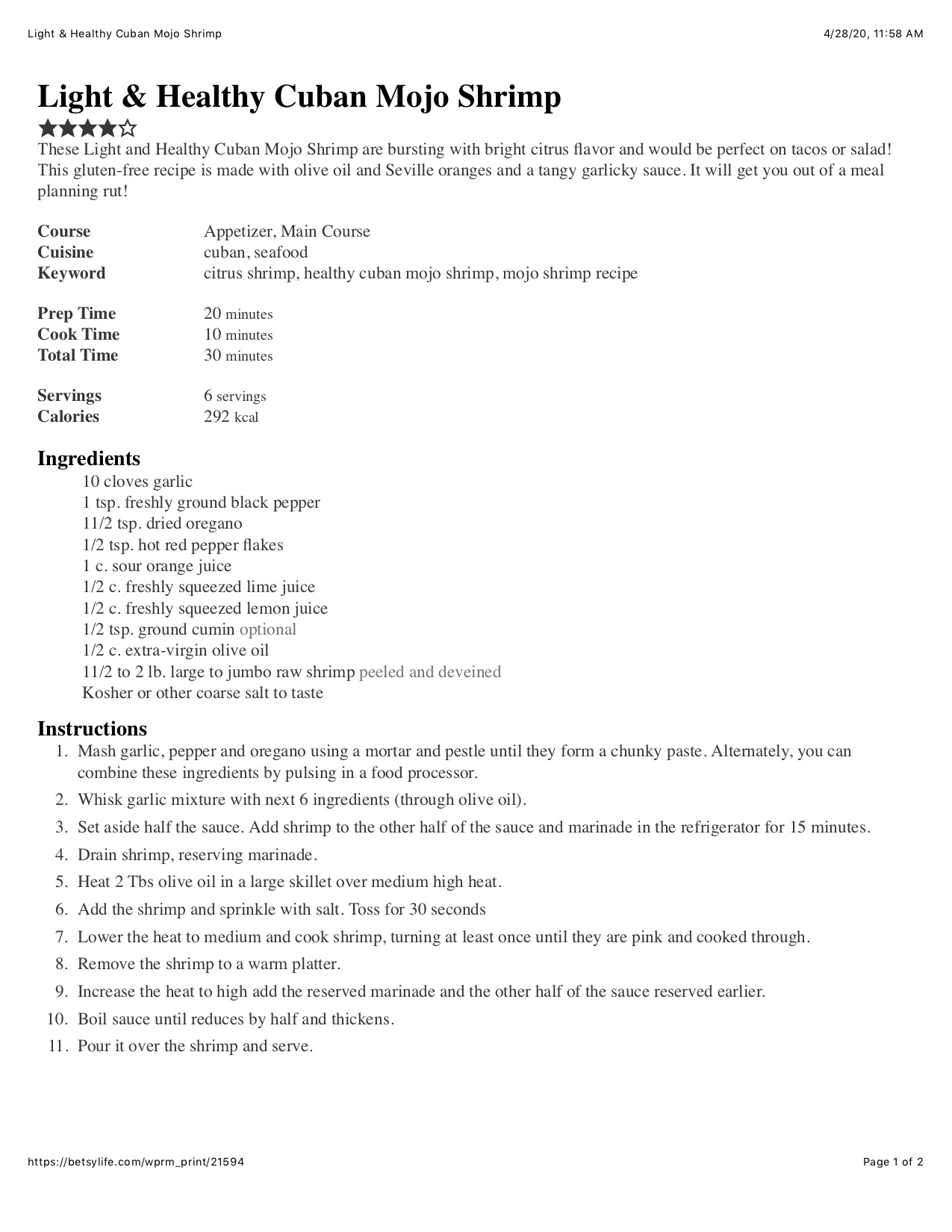 Light & Healthy Cuban Mojo Shrimp