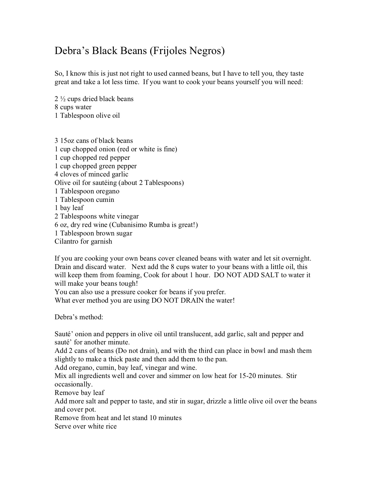Debra’s Black Beans (Frijoles Negros)